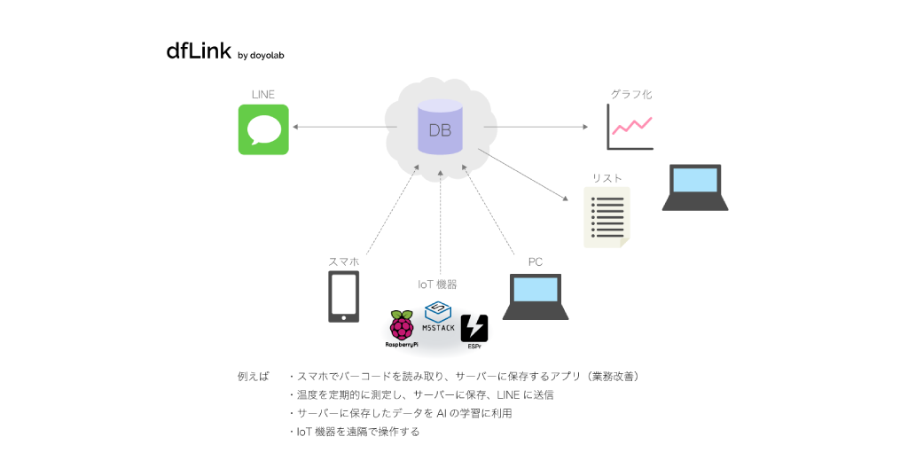 dfLinkはIoTデバイスからのデータを収集、処理、管理できるXBP用に開発したIoTサーバーです。dfLinkを使うと、IoTサービス・製品のプロトタイピングができます。