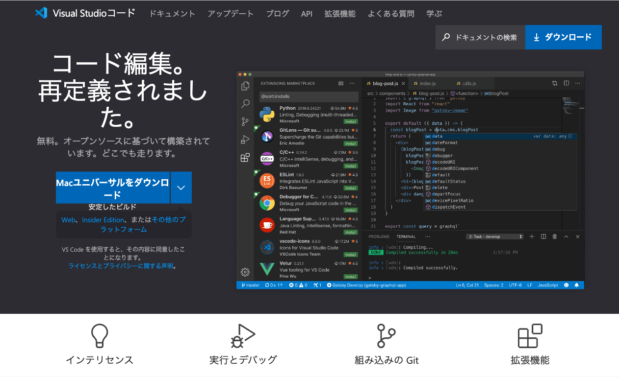Webページの編集やpythonのプログラミングにはVS Codeを使います。